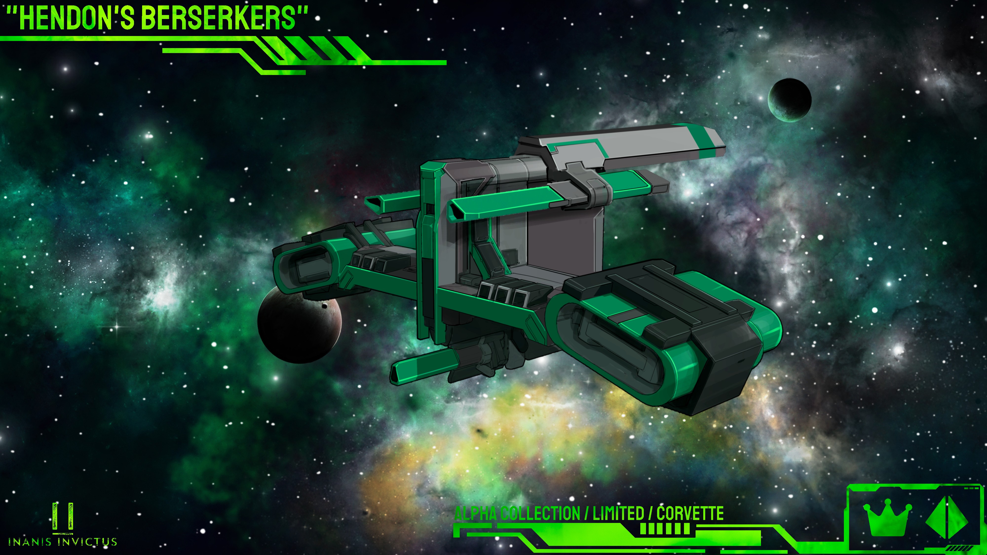 Hendon's Berserkers is the moniker for an elite squadron of advanced corvettes that served during the Vega Conflict. Lead by Jethrow Hendon of the United Terran Systems fleets, this squadron is comprised almost entirely from an advanced Odin Industries corvette design based on the 'Seax' system. The squadron was touted as one of the most effective forces in the UTS during the conflict, racking up hundreds of confirmed kills throughout the war. The ships boast triple rotary cannons with an onboard warfare AI, reinforced armor, evasive maneuvering systems, making them one of the most lethal corvette platforms in existence.