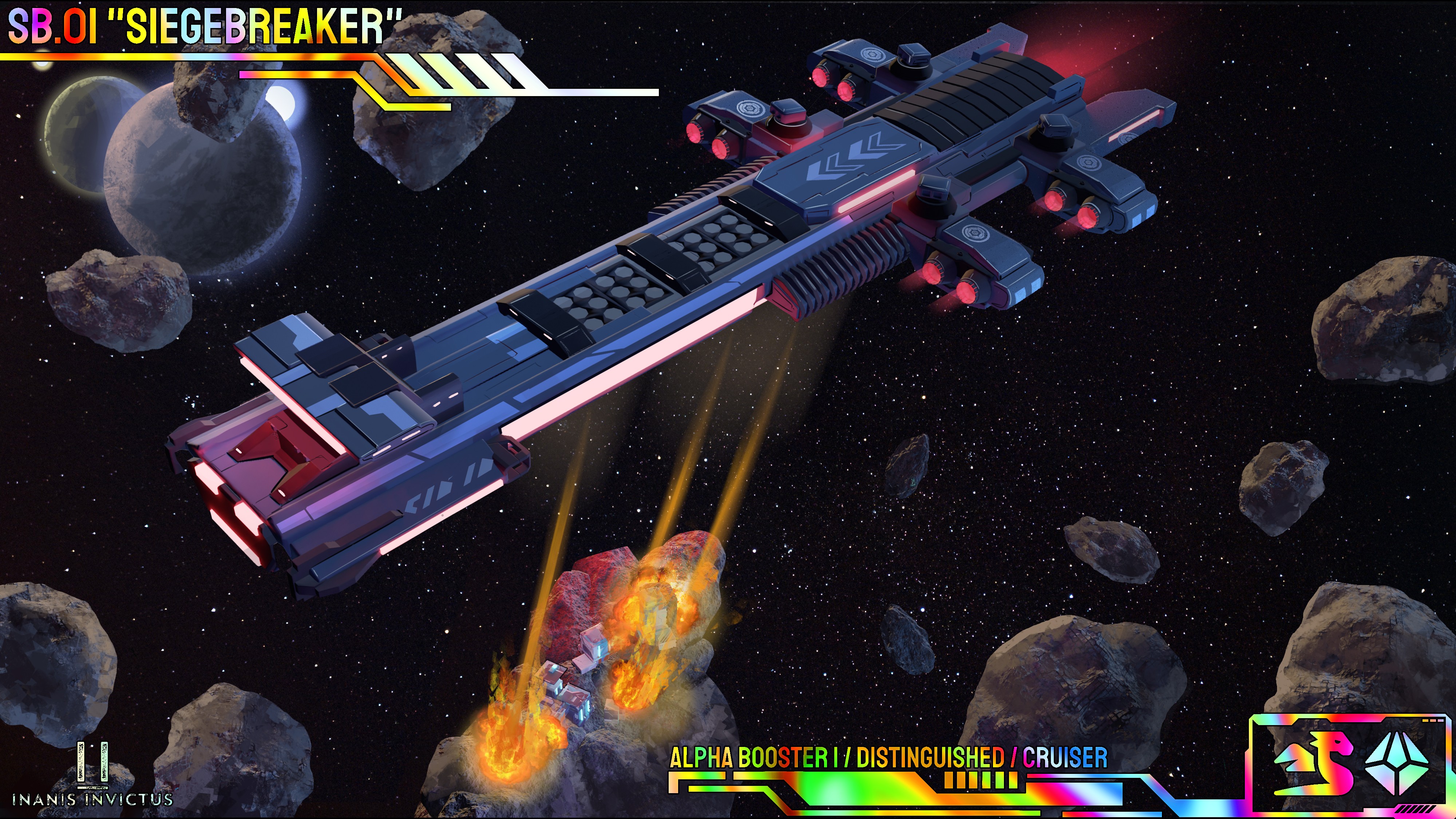 In a growing list of ships that have fallen into control of the rogue ArcNet AI is the one and only SB.01 'Siegebreaker' cruiser. Being built in the same shipyards as the 'Raytheon-X', the Siegebreaker was another prototype ship being designed by the joint efforts of the Valex Conglomerate and Odin Industries specifically for orbital and station bombardment missions. While the ship's devastating nuclear armaments were not enabled at the time, ArcNet has surely bypassed that limitation since. The Siegebreaker leverages a brutally effective array of weapons including the extricator nuclear missile systems, experimental Neoflex mass driver batteries and the tried and true Odin 40mm PD systems, but is surely to remain on the periphery of engagements with its weaker shields and armor.