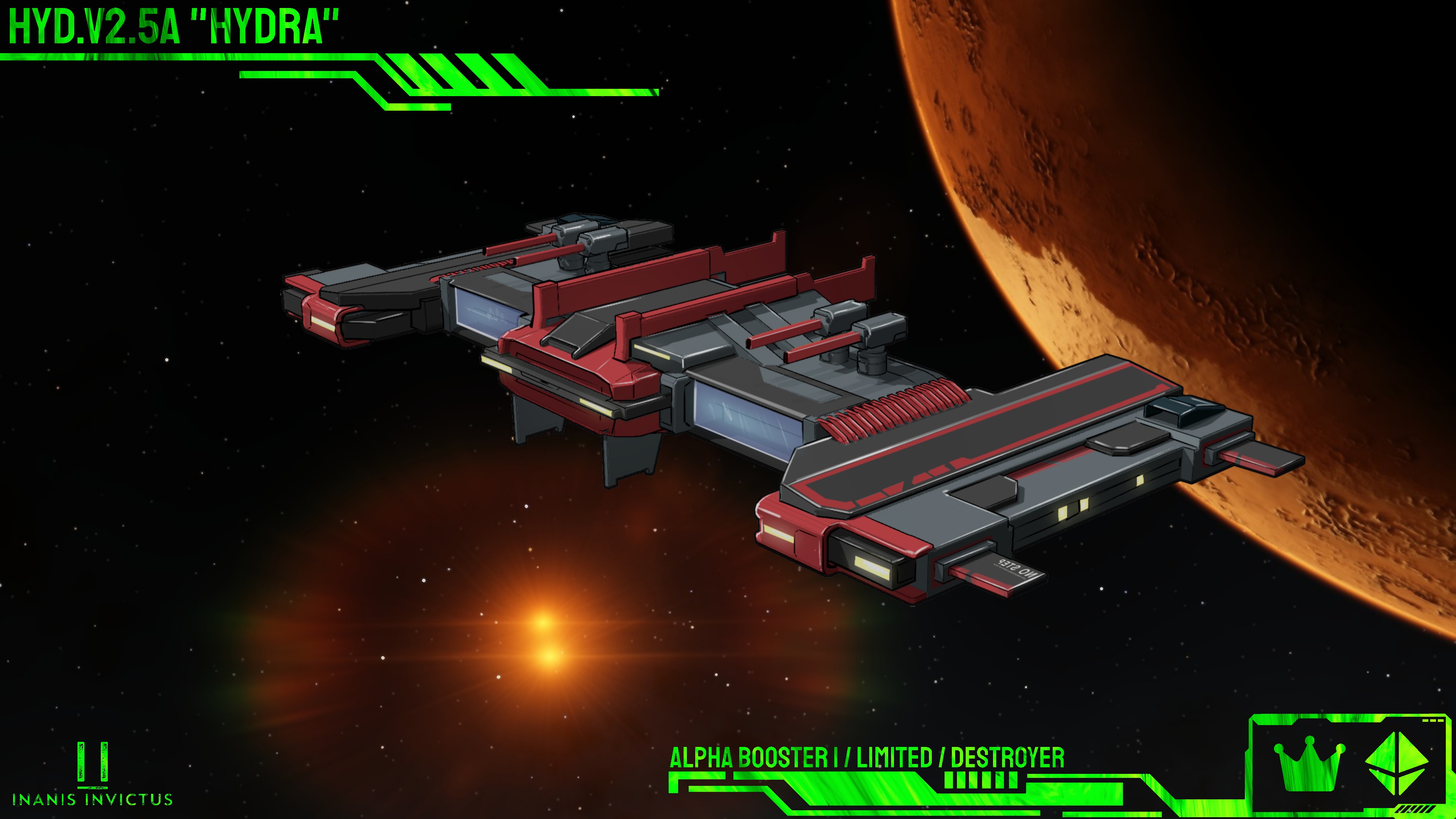 They Hydra destroyer is a similar design to it's smaller cousin the Vespa and boasts many of the same capabilities, only enhanced. Designed as a long range heavy fire support destroyer, the Hydra can lay down devastating swaths of fire from its gauss cannon batteries while dominating the battlefield with 2 full wings of the UHI-53b 'Venom' assault craft. The ship saw limited production before the absorption of the Ferox Subsidiary after the Vega Conflict began, but it still remains highly sought after by all manner of fleet commanders.