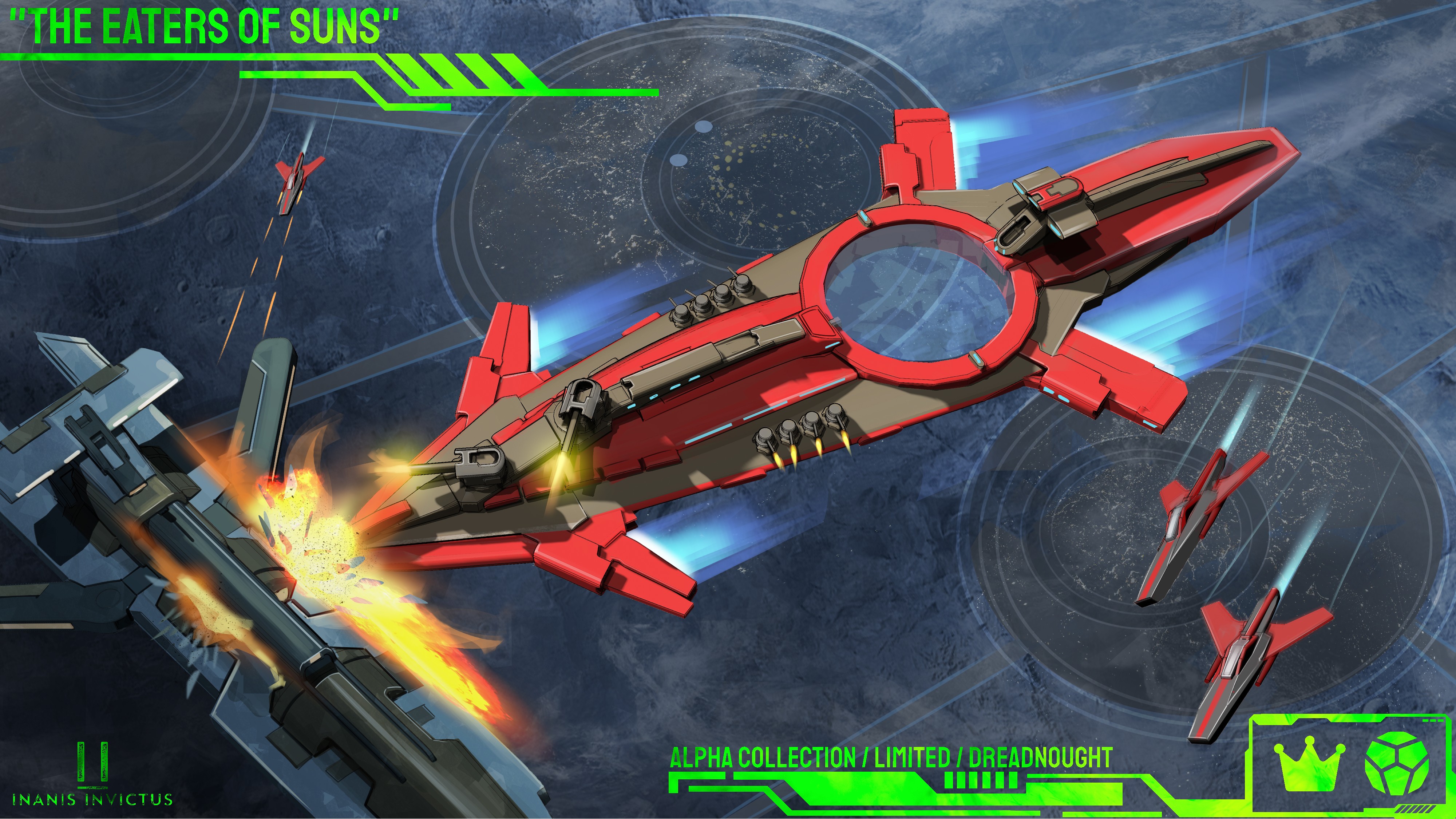 'The Eaters of Suns' was a task force designation assigned to a contingent of Apep class strategic carriers and their supporting assets commissioned by the Imperium's royal council at the outset of the Vega Conflict. Their objective was to invade several Terran core worlds and establish rally points for further invasion forces. While they never fully achieved their objective, the Eaters of Suns also never suffered a single casualty as a result of this ambitious strategy. As modified versions of the Apep strategic battlecruisers, the Eaters of Suns are still touted as some of the most robust dreadnought class ships in existence to this day. In later stages of the Vega Conflict, there were several reports of these, truly awesome, behemoths ramming through Terran cruisers and dreadnoughts during pitched conflicts. The ship's primary armament is a pair of super heavy plasma cannons that lack the range of similar classed weapons, but have been known to blow holes clean through larger capital ships under the right circumstances. The ships also boast an integrated automated damage network, capable of repairing the hull and armor even in the middle of a heated engagement.